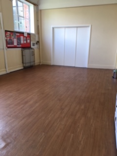This is a bright medium-sized hall. Ideal for clubs, rehearsals, concerts/recitals, music groups, dance, plays, after school classes. Tables and chairs are provided. The flooring is laminate.